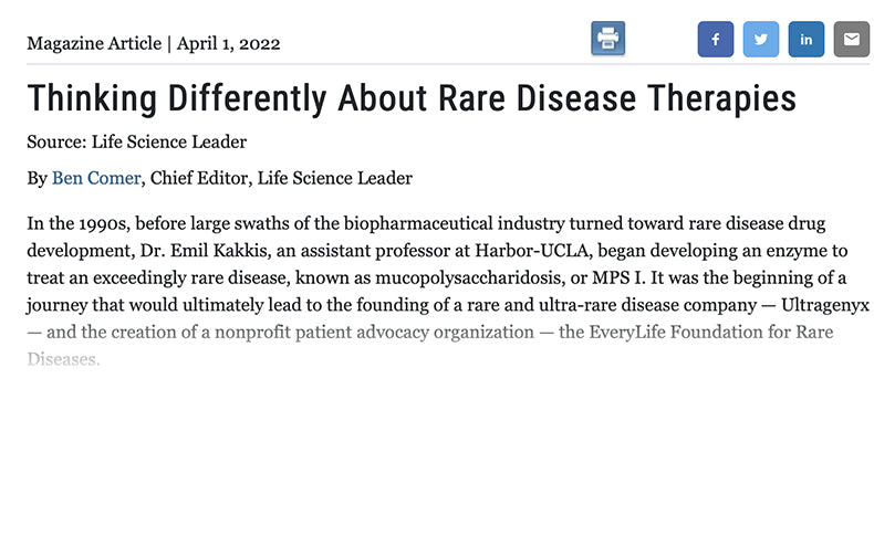 The inspiring story by physician-scientist Dr. Emil Kakkis about his journey to develop a new, first-ever treatment for an ultra-rare genetic disease called MPS. The scientist had great challenges getting grant and industry support for this rare disease despite the solid science behind doing the treatment. Simultaneously across the country, Mark Dant was in a quest to save his 9-year-old son, Ryan, afflicted by MPS for which there was no cure. Through extraordinary persistence, and with a clock-ticking on Ryan’s declining health, Mr. Dant eventually learns of Dr. Kakkis and his work, whose enzyme replacement therapy could potentially treat Ryan successfully. With renewed hope of saving his son’s life, Mr. Dant turns his attention to fundraising through his own Ryan Foundation to support the continued development of the life-saving treatment. Through an extraordinary series of obstacles and heartaches, Dr. Kakkis develops a successful treatment and ultimately gains the required support of a biotech company to complete the project. Despite early success treating MPS patients, the FDA’s abruptly changing policies caused great uncertainty as to whether the therapy would ever get approved – leading to a dramatic showdown at an FDA Advisory Committee meeting. In the end, the treatment was finally approved for all MPS patients, and ultimately saved Ryan. Ryan has been on the enzyme replacement therapy for more than 23 years. He went on to graduate college and in 2021 was married.